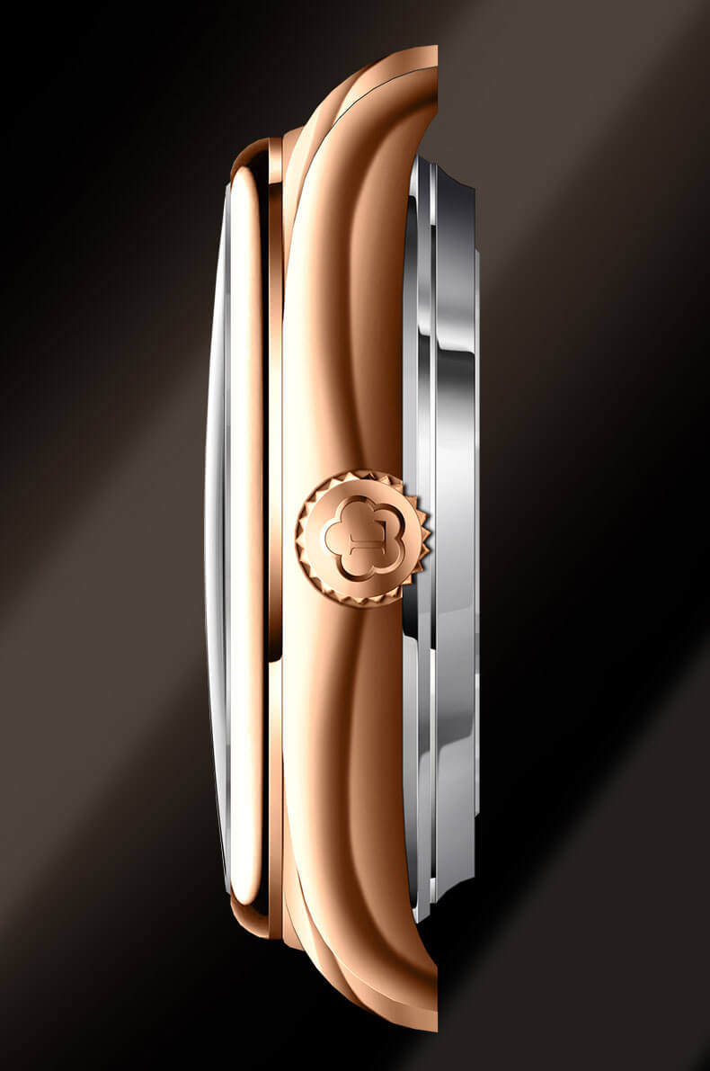 - THIẾT KẾ OPEN HEART KINH ĐIỂN: được tạo nên bởi những chi tiết mạ vàng PVD sang trọng cùng điểm nhấn lộ cơ tinh tế nằm ở góc 6 giờ. Cửa sổ Open Heart hé lộ phần chuyển động đẹp nhất của cỗ máy cơ khí tinh xảo, cho bạn cảm giác như đang giao thoa tâm hồn cùng nhịp đập của thời gian.