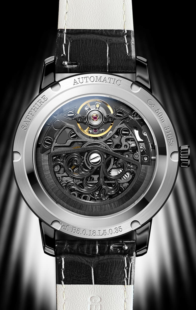 ❏ Mạ Vàng hồng : Phủ trọn gần như là toàn bộ mặt số đồng hồ LOBINNI L15011-2. Trong khi đó, sự sang trọng lại được kết hợp với nền tảng Skeleton độc đáo, giúp các quý ông chìm đắm ở cả mặt trước lẫn mặt sau thiết kế.