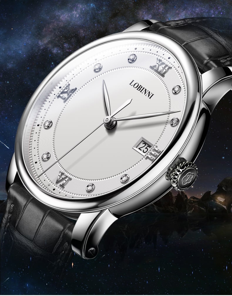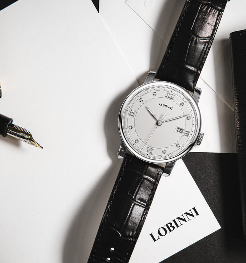 Về bộ máy: Lobinni L3012-4 vận hành bởi cỗ máy điện tử (Quartz) do chính lobinni sản xuất vô cùng chính xác. Tích lũy từ những kinh nghiệm chế tác lâu đời, bộ máy cơ thể hiện sự tinh xảo mà không phải bộ máy nào cũng có được.