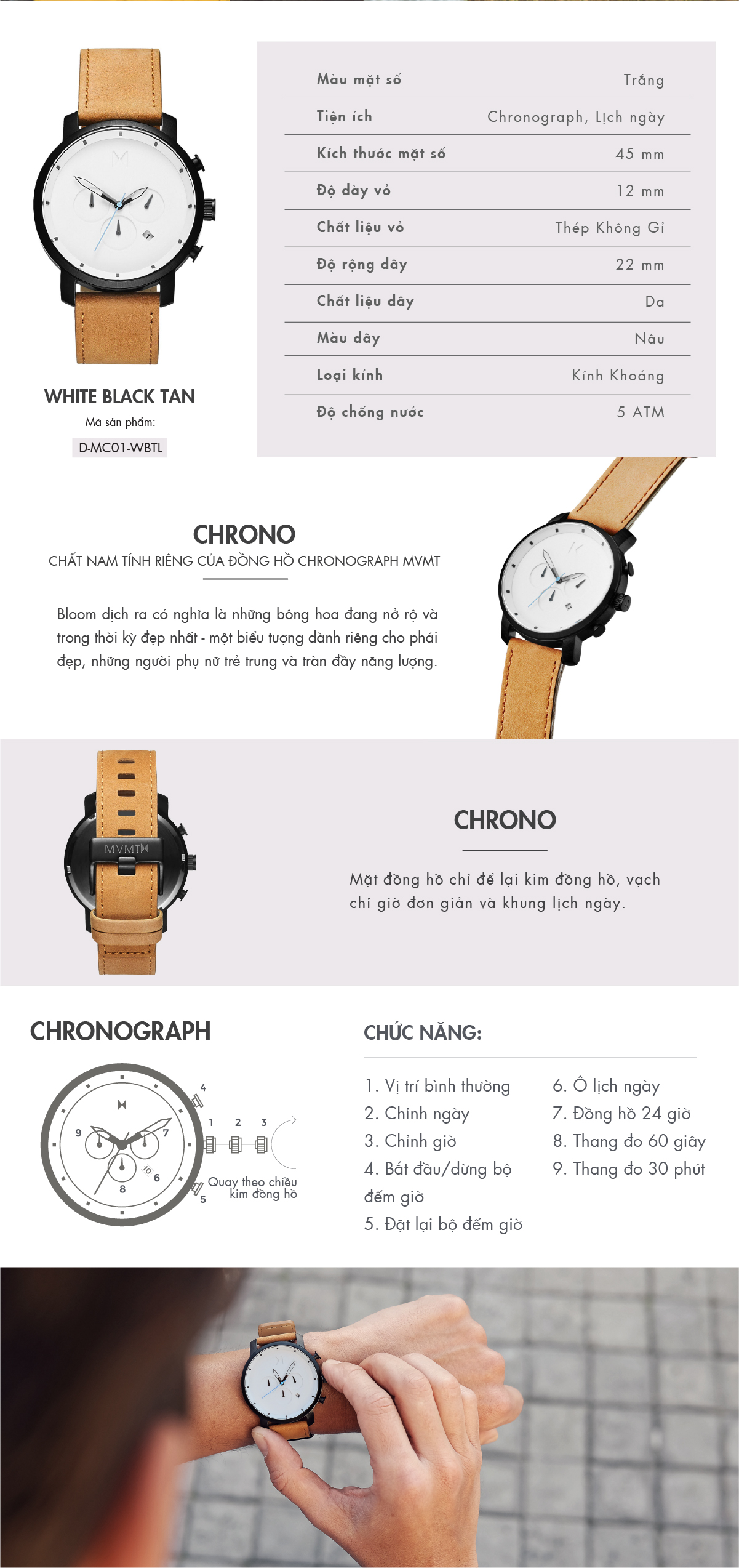 Đồng hồ Nam MVMT dây da 45mm - Chrono D-MC01-WBTL