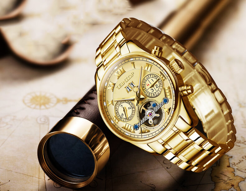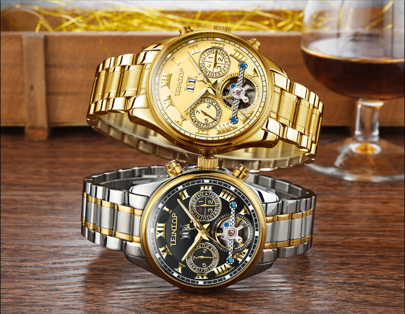 Đồng hồ TEINTOP cái tên thương hiệu lâu đời và quen thuộc, khẳng định là một trong những thương hiệu tầm trung có tiếng và được nhiều người ưa thích với hai loại máy của MỸ ------------------------------------- Mạnh mẽ đầy trẻ trung cùng mẫu TEINTOP T8660-8 Tự động nổi trội với mặt vàng dây vàng sang trọng Với màu vàng chủ đạo cùng 3 núm chỉnh được thiết kế cân đối đem lại cảm giác khỏe khoắn, năng động khi sở hữu trên tay Mọi chức năng hầu như đầy đủ trên một chiếc đồng hồ như:Lịch ngày,Lịch thứ,Lịch tháng,Lịch quý Mặt kính tráng Sapphire , kim giờ, kim phút dạ quang , dây thép không gỉ 316L chất lượng cùng với khóa bấm tiện lợi Kích thước size 40mm và độ dày vừa phải giúp người đeo ôm trọn cả bàn tay Thiết kế tinh tế khi vỏ đồng hồ được làm bằng nhựa tráng bạc, giúp người đeo cảm giác thoải mái,không nặng nề, không bị rít da, không khó chịụ.