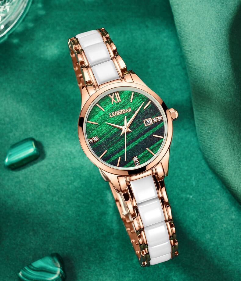 Mặt đồng hồ màu xanh lá lạ mắt nhưng thanh lịch tạo nên điểm nhấn trên tay, phù hợp với dân văn phòng cũng như học sinh, sinh viên.