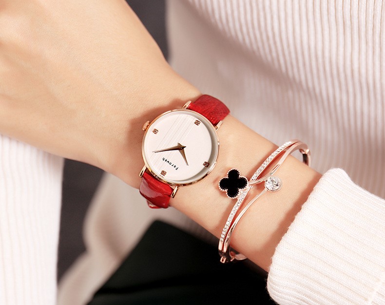- Tên: Đồng hồ nữ dây da mặt tròn đỏ quyến rũ Fernweh ĐHĐ16801