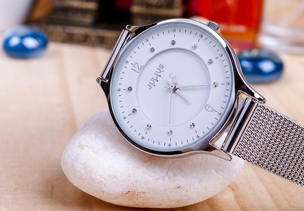 Đồng hồ đeo tay nữ dây da và Dây kim loại thương hiệu Julius rất bền bỉ là Đồng hồ