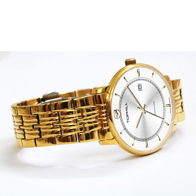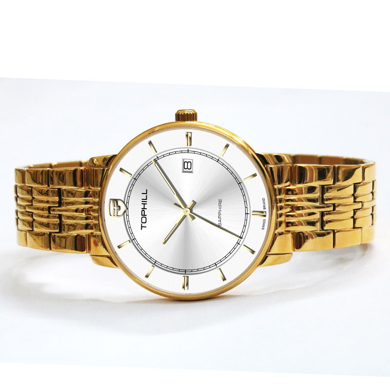 Đồng hồ Tophill TA037G là sản phẩm cao cấp được sản xuất bởi thương hiệu đồng hồ Thụy Sĩ Tophill do công ty Trần Đức nhập khẩu và phân phối duy toàn thị trường Việt Nam. Chất liệu được sử dụng từ những chất liệu cao cấp nhất trong chế tác đồng hồ như thép không gỉ 316L, kính sapphire chống trầy xước và bộ máy pin mạnh mẽ, độ chính xác cao. Mức chịu nước tối đa lên tới 50m dùng đi mưa, rửa rất thoải mái và yên tâm.