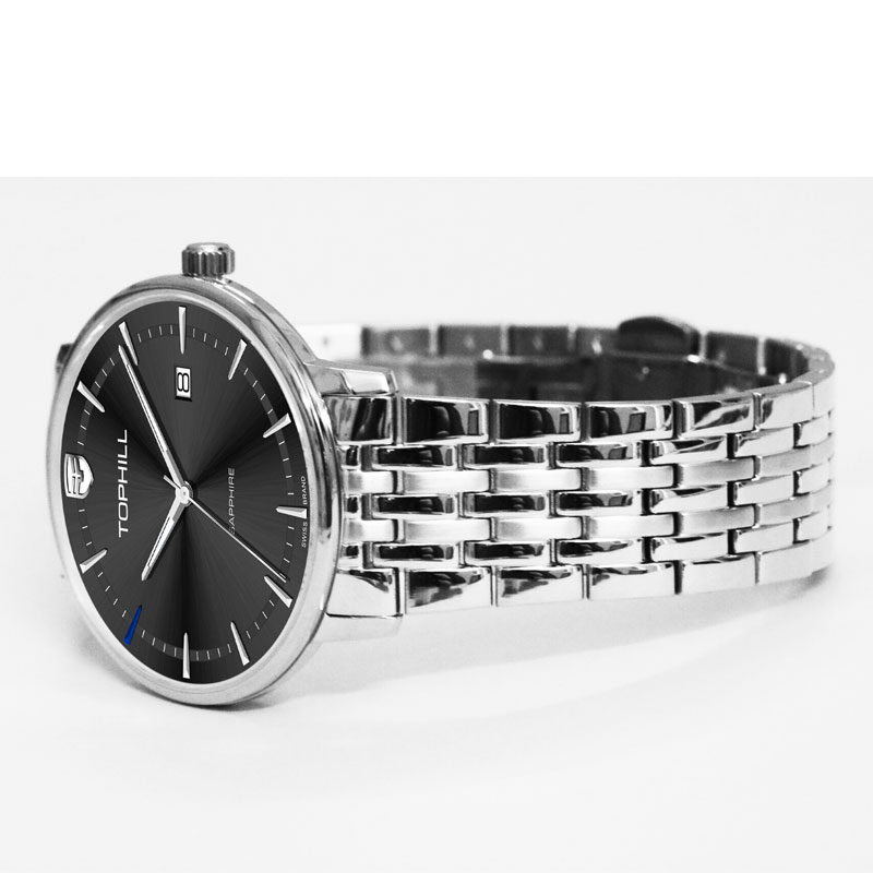 Đồng hồ Tophill TA038G là sản phẩm cao cấp được sản xuất bởi thương hiệu đồng hồ Thụy Sĩ Tophill do công ty Trần Đức nhập khẩu và phân phối duy toàn thị trường Việt Nam. Chất liệu được sử dụng từ những chất liệu cao cấp nhất trong chế tác đồng hồ như thép không gỉ 316L, kính sapphire chống trầy xước và bộ máy pin mạnh mẽ, độ chính xác cao. Mức chịu nước tối đa lên tới 50m dùng đi mưa, rửa rất thoải mái và yên tâm.