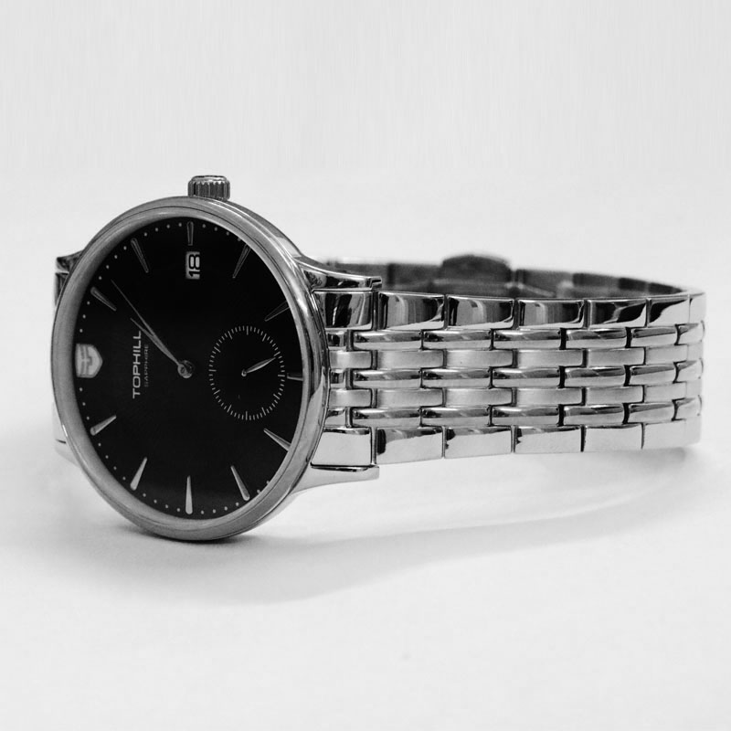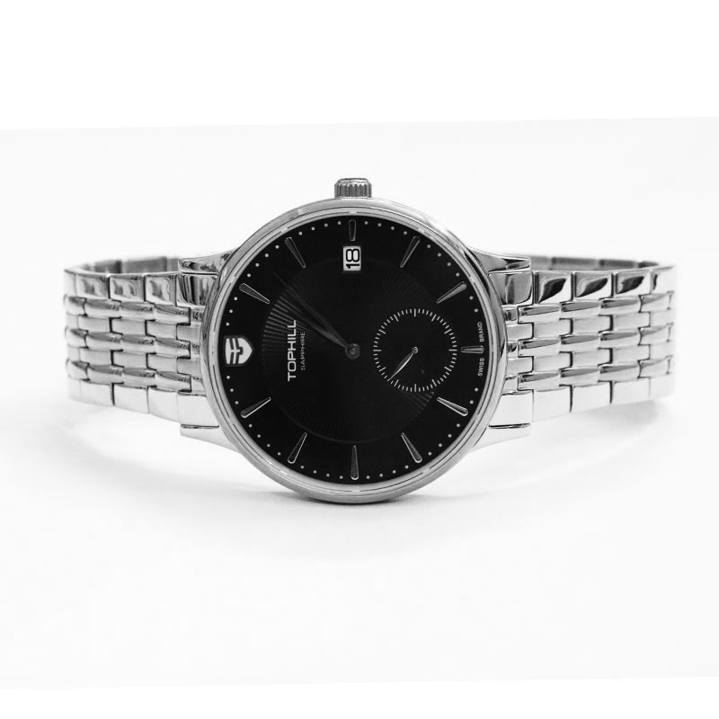 Đồng hồ Tophill TA051G là sản phẩm cao cấp được sản xuất bởi thương hiệu đồng hồ Thụy Sĩ Tophill do công ty Trần Đức nhập khẩu và phân phối duy toàn thị trường Việt Nam. Chất liệu được sử dụng từ những chất liệu cao cấp nhất trong chế tác đồng hồ như thép không gỉ 316L, kính sapphire chống trầy xước và bộ máy pin mạnh mẽ, độ chính xác cao. Mức chịu nước tối đa lên tới 50m dùng đi mưa, rửa rất thoải mái và yên tâm.