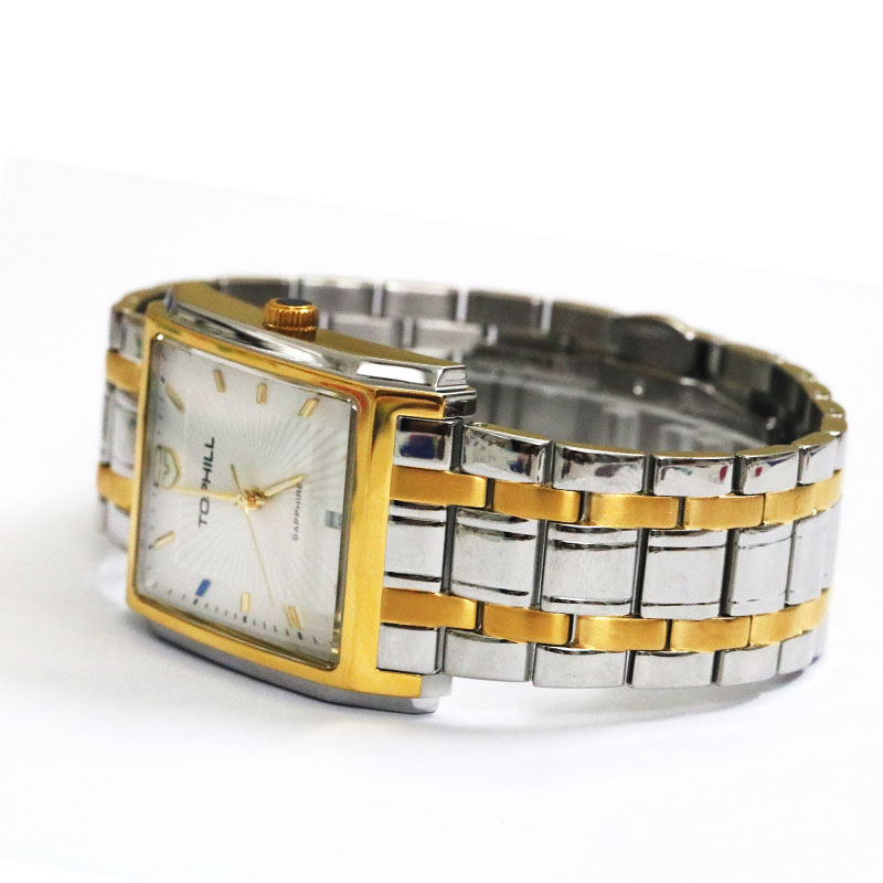 Đồng hồ Tophill TW080G là sản phẩm cao cấp được sản xuất bởi thương hiệu đồng hồ Thụy Sĩ Tophill do công ty Trần Đức nhập khẩu và phân phối duy toàn thị trường Việt Nam. Chất liệu được sử dụng từ những chất liệu cao cấp nhất trong chế tác đồng hồ như thép không gỉ 316L, kính sapphire chống trầy xước và bộ máy pin mạnh mẽ, độ chính xác cao. Mức chịu nước tối đa lên tới 50m dùng đi mưa, rửa rất thoải mái và yên tâm.