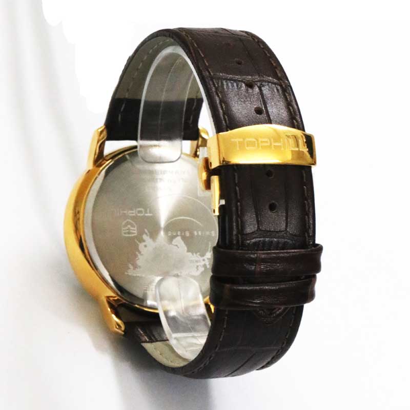 Đồng hồ Tophill TW082G là sản phẩm cao cấp được sản xuất bởi thương hiệu đồng hồ Thụy Sĩ Tophill do công ty Trần Đức nhập khẩu và phân phối duy toàn thị trường Việt Nam. Chất liệu được sử dụng từ những chất liệu cao cấp nhất trong chế tác đồng hồ như thép không gỉ 316L, dây da cao cấp, kính sapphire chống trầy xước và bộ máy pin mạnh mẽ, độ chính xác cao. Mức chịu nước tối đa lên tới 50m dùng đi mưa, rửa rất thoải mái và yên tâm.