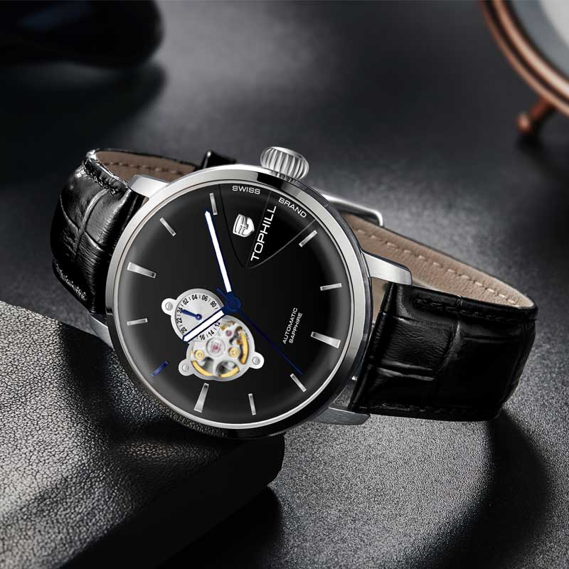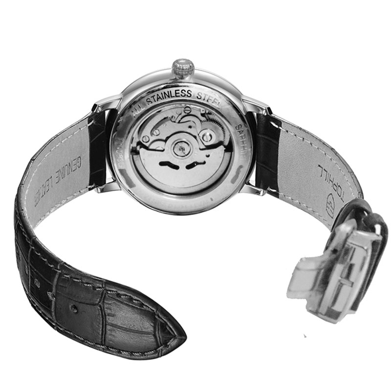 Đồng hồ Tophill TW083G là sản phẩm cao cấp được sản xuất bởi thương hiệu đồng hồ Thụy Sĩ Tophill do công ty Trần Đức nhập khẩu và phân phối duy toàn thị trường Việt Nam. Chất liệu được sử dụng từ những chất liệu cao cấp nhất trong chế tác đồng hồ như thép không gỉ 316L, dây da cao cấp, kính sapphire chống trầy xước và bộ máy automatic mạnh mẽ, độ chính xác cao. Mức chịu nước tối đa lên tới 50m dùng đi mưa, rửa rất thoải mái và yên tâm.