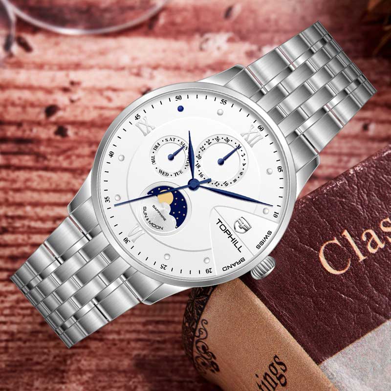 Đồng hồ Tophill TW085G là sản phẩm cao cấp được sản xuất bởi thương hiệu đồng hồ Thụy Sĩ Tophill do công ty Trần Đức nhập khẩu và phân phối duy toàn thị trường Việt Nam. Chất liệu được sử dụng từ những chất liệu cao cấp nhất trong chế tác đồng hồ như thép không gỉ 316L, kính sapphire chống trầy xước và bộ máy pin mạnh mẽ, độ chính xác cao. Mức chịu nước tối đa lên tới 50m dùng đi mưa, rửa rất thoải mái và yên tâm.