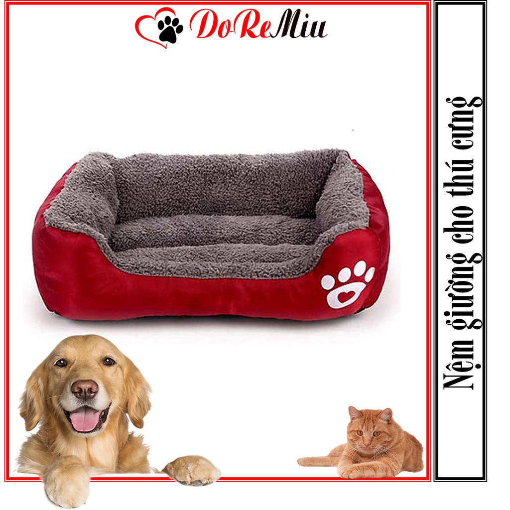 1) nệm đỏ mận Xịn xò S: Chiều dài 45cm Chiều rộng 40cm Chiều cao 12cm phù hợp cho chó mèo dưới 4kg
