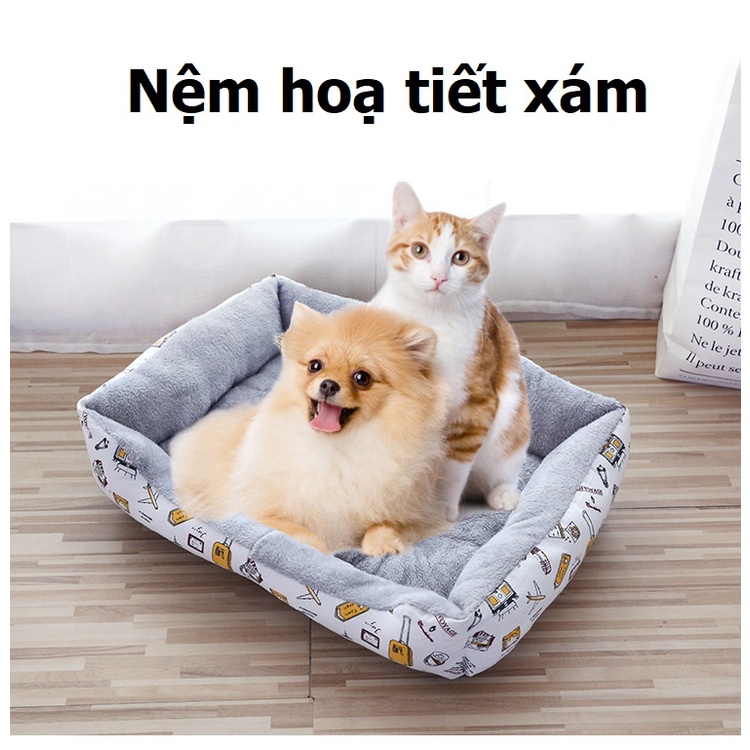 2) Nệm hoạ tiết xám giá rẻ S: 47x30cm phù hợp cho chó mèo dưới 3kg M: 62x45cm phù hợp cho chó mèo dưới 6kg L:72x55cm phù hợp cho chó mèo dưới 10kg