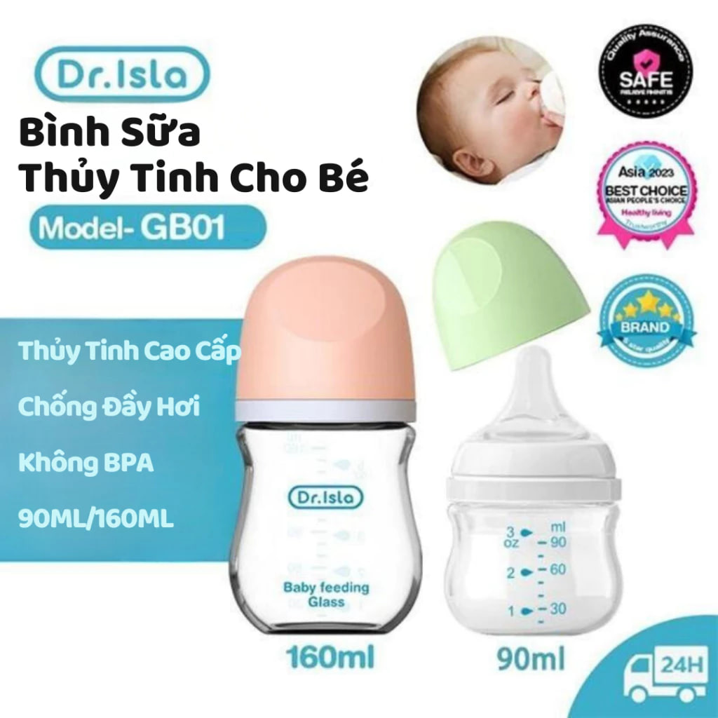 Dr.Isla Bình Sữa Thủy Tinh Cho Bé Sơ Sinh Không BPA Chịu Nhiệt Tốt 90ml/160ml GB01/GB02: