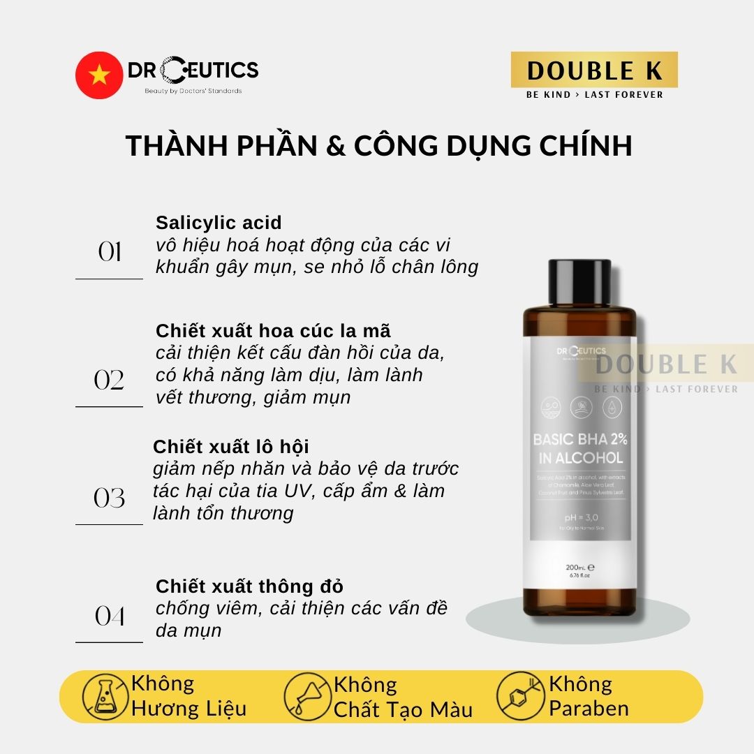 THÀNH PHẦN & CÔNG DỤNG CHÍNH của Basic BHA 2% In Alcohol (Nền Cồn) DrCeutics