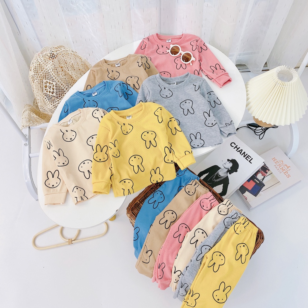 [DT48] Bộ Dài Tay Vải Tăm Hình Thỏ Xung Quanh Cho Bé Cực Đáng Yêu Chất Vải Tăm Gân Cực HOT Size Từ 8-18Kg VNXK Nhật-Hàn