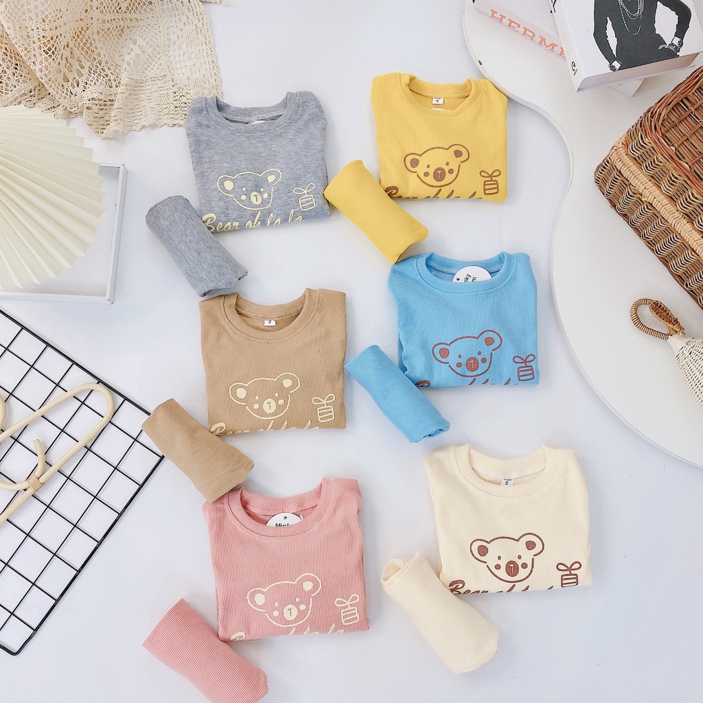 [DT71] Bộ Dài Tay Cho Bé Hình Gấu Túi Chất Vải Tăm Lạnh Mềm Mại Đáng Yêu Size Từ 8-18Kg VNXK Nhật-Hàn