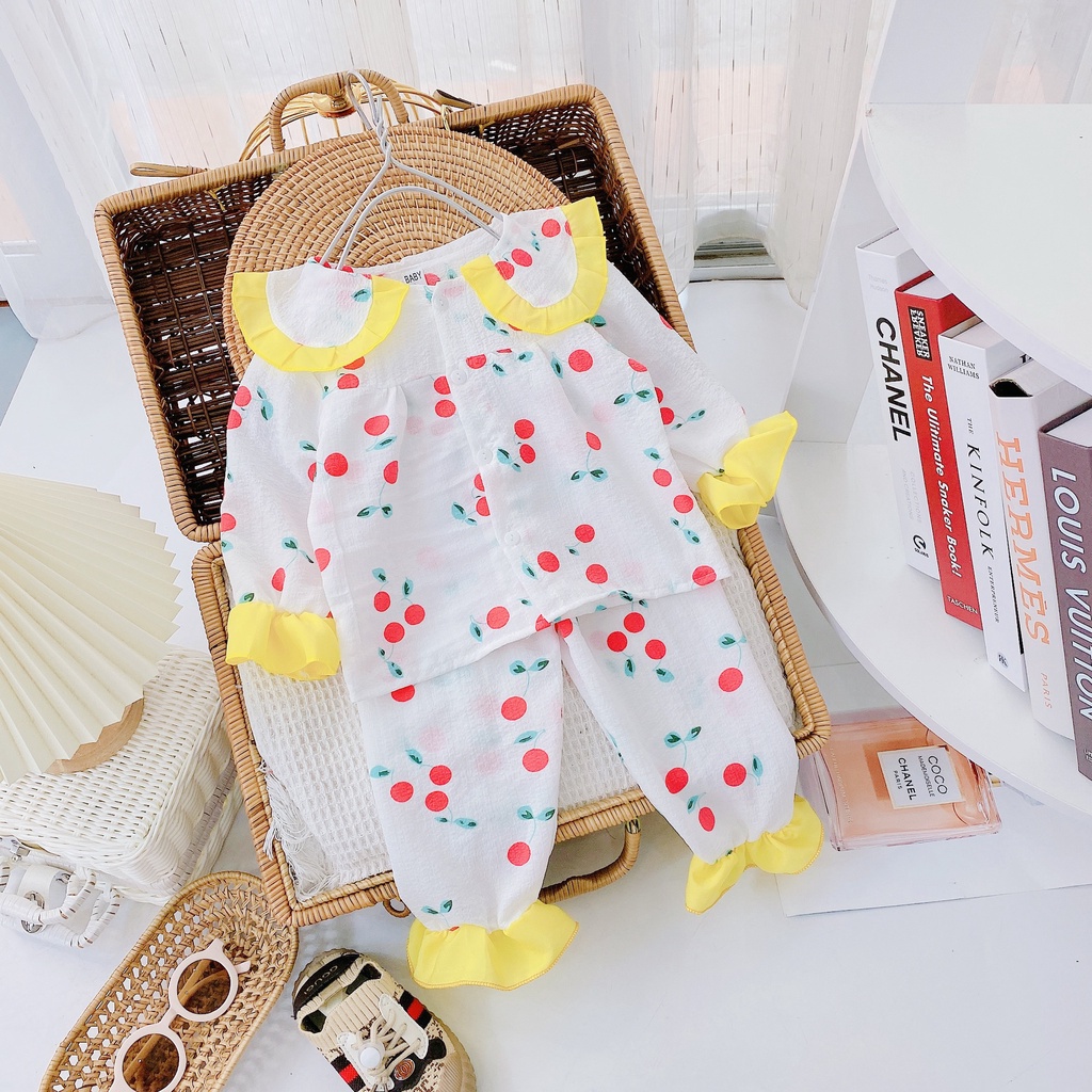 Thời trang trẻ em & trẻ sơ sinh > Quần áo trẻ em > Bộ quần áo || [DT91] Bộ Dài Tay PYJAMA Phối Ren Cổ Vàng Cho Bé Chất Vải Đũi Xốp Cao Cấp Dáng Đáng Yêu Size Từ 8-20Kg VNXK Nhật-Hàn
