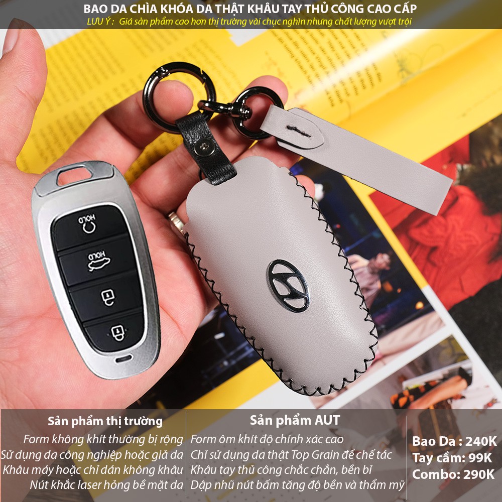 Giới thiệu Đựng chìa khóa Hyundai Santafe Tucson 2022 mới da bò khâu tay HMV AD có tay cầm