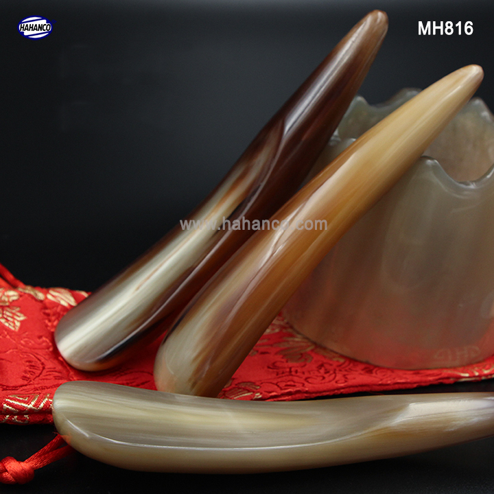 Dùng để day ấn huyệt, cạo (đánh) gió rất êm, không gây tụ máu dưới da. Chất liệu Sừng có khả năng phát tán chướng khí và thông khí huyết.
