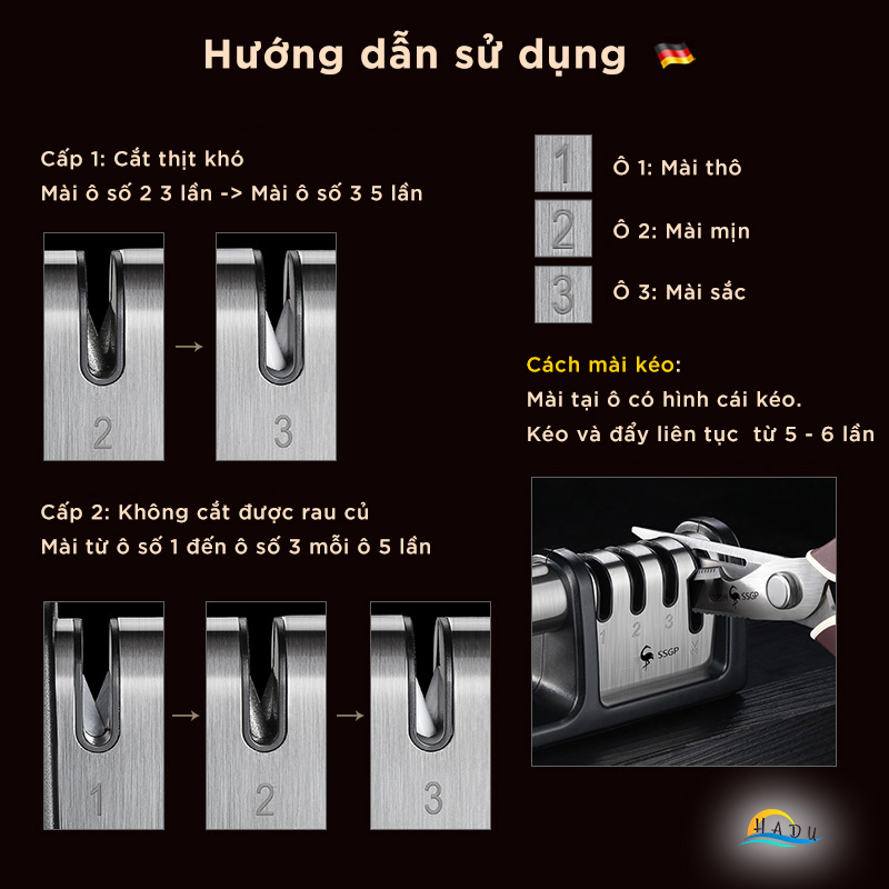 Dụng Cụ Mài Dao Kéo 3 Rãnh Chuyên Nghiệp Siêu Sắc Đạt Chất Lượng Của Đức Cao Cấp SSGP