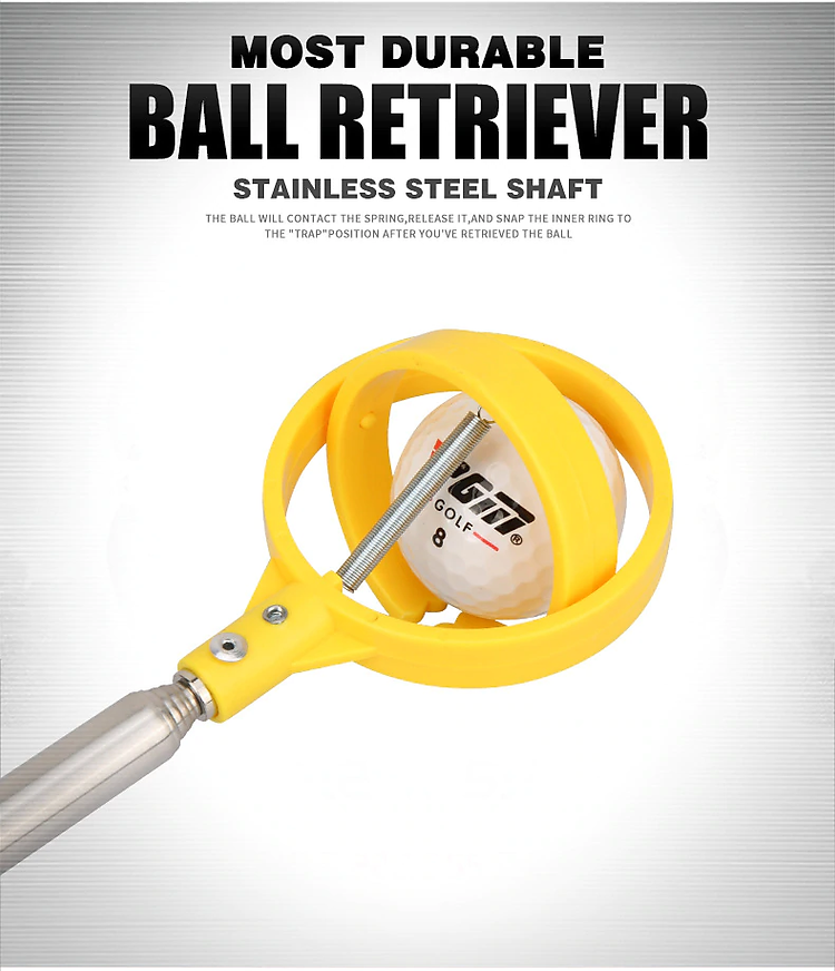 - Đây là loại dụng cụ rất tiện lợi sử dụng cho việc vớt bóng Golf trong những tình huống bóng rớt xuống mặt nước, rơi vào hố cát hay nó có thể lấy bóng một cách dễ dàng ngay cả trên mặt đất.