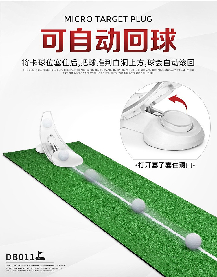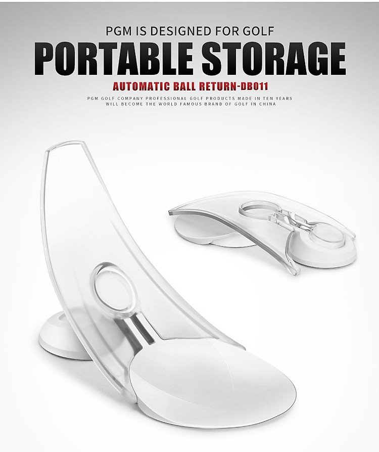 - Dựa theo nguyên lý hoạt động của những chiếc máy bắn bóng tập putt, DB011 với thiết kế đường cong tiêu chuẩn giúp bóng tự động quay về sau khi putt, giúp golfer tập luyện tiện lợi hơn.