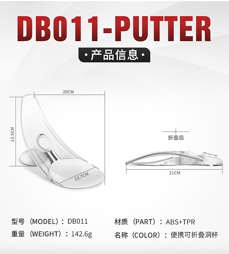 - DB011 là sản phẩm cốc hỗ trợ tập Putting có thể gấp gọn được, tiện lợi mang đi khắp mọi nơi.