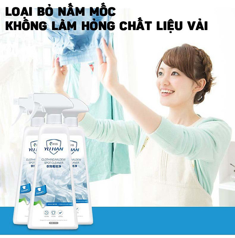 – Mọi vấn đề ấy hoàn toàn được giải quyết bởi chai xịt tẩy mốc quần áo đa năng số 1 này.