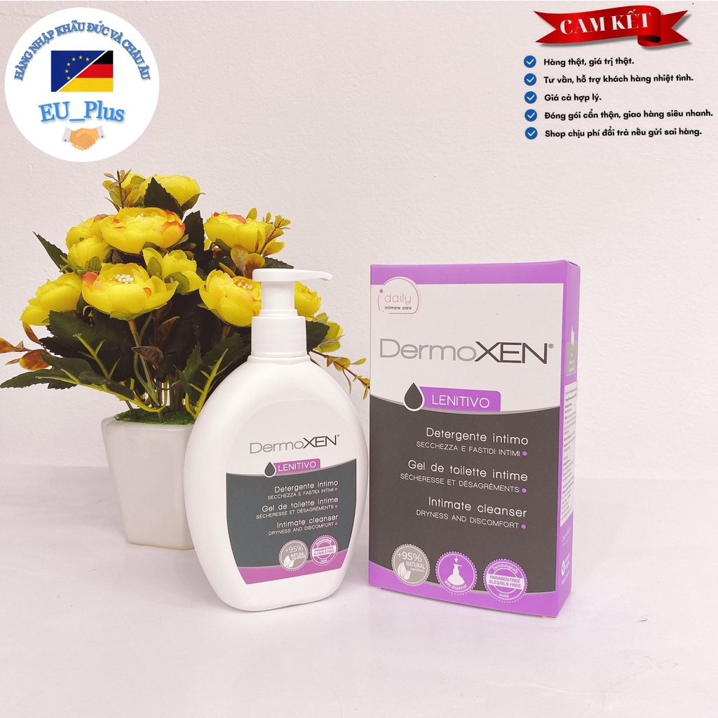Giới thiệu sản phẩm Dung dich vệ sinh phụ nữ DermoXEN LENITIVO giúp tái tạo cân bằng hệ vi sinh trong vùng kín và ngăn ngừa sự tấn công của vi khuẩn và nấm. Được nghiên cứu với công thức sử dụng chất hoạt động bề mặt dịu nhẹ có nguồn gốc từ thực vật và khả năng tạo bọt thấp với 95% các thành phần tự nhiên có tác dụng bảo vệ làm dịu và dương ẩm cho vùng kín công thức đi đầu với chất xơ prebiotic tăng cường hàng rào bảo vệ vùng kín đã được nghiên cứu in vivo& in vitro trên biểu mô âm đạo và mô hình tái tạo da KHUYẾN CÁO SỬ DỤNG TRONG TRƯỜNG HỢP: -Vệ sinh hằng ngày ngăn ngừa nguy cơ viêm nhiễm phụ khoa đặc biệt trong thời kì kinh nguyệt thai nghén sau khi sinh giúp cân bằng PH sinh lý không làm thay đổi môi trường âm đạo và giúp tái tạo hệ vi sinh âm đạo.Tạo thuận lợi cho phụ nữ can thiệp IVF(thụ tinh trong ống nghiệm)/IUI(bơm tinh trùng đã được lọc rửa) sử dụng hằng ngày . -Nhiễm khuẩn phụ khoa:làm sạch khử mùi hôi tái tạo hệ vi sinh và hàng rào bảo vệ tự nhiên của vùng kín.Hỗ trợ điều trị trong nhiễm khuẩn phụ khoa như viêm âm đạo,âm hộ,ngứa âm hộ,huyết trắng... -Ngứa và nóng rát vùng kín do stress lạm dụng thuốc -Thời kì mãn kinh tiền mãn kinh: làm giảm tình trạng khô rát vùng kín cho các phụ nữ trong giai đoạn tiền mãn kinh và mãn kinh HƯỚNG DẪN SỬ DỤNG: -Cho một lượng nhỏ lên vùng da ướt mát xa và rửa lại kỹ bằng nước sạch Sử dụng 2 lần mỗi ngày dung dịch dùng ngoài -----------------------------------------------------------------------------------------------------------------------