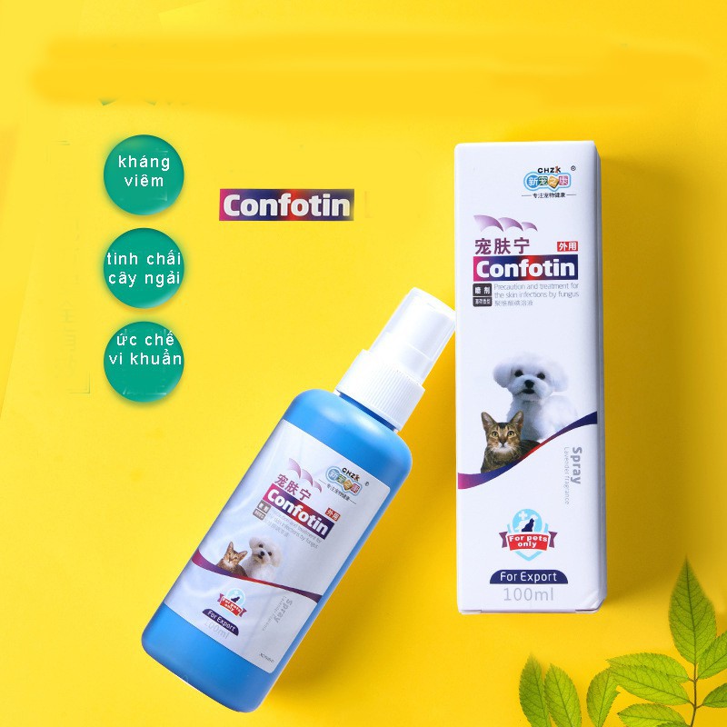 Giới thiệu Dung dịch xịt nấm cho mèo chó CHZK CONFOTIN - 100ML- tinh chất ngải cứu csp30