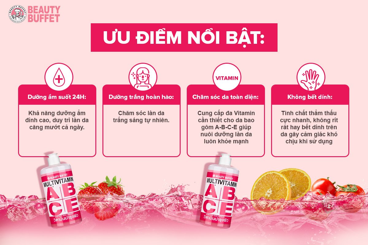 ●Bổ sung phức hợp Vitamin B: giúp làm mờ các vết thâm, cân bằng độ ẩm hiệu quả giúp da luôn ẩm mịn