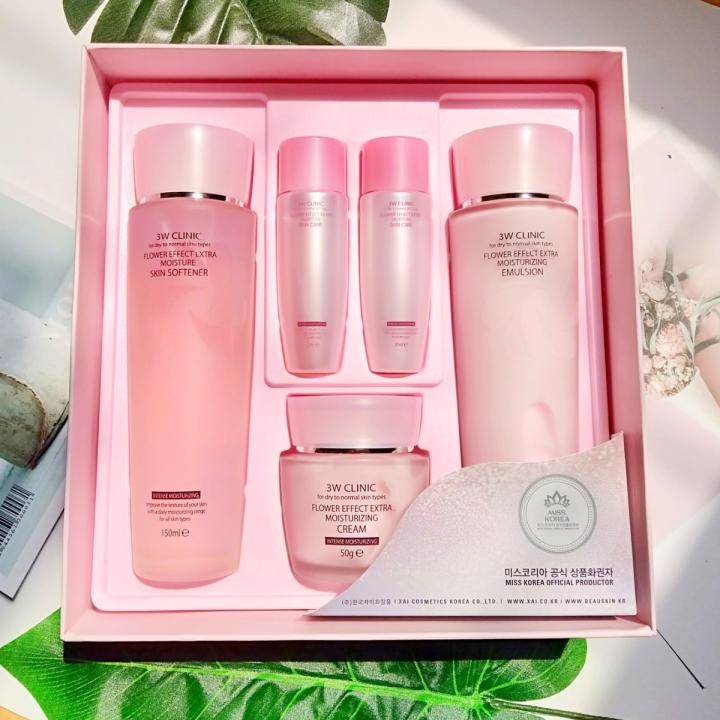 Giới thiệu Bộ dưỡng trắng da Chống Lão Hóa Tinh Chất Hoa Hồng 3W Clinic Flower Effect Extra Moisturizing Skin care Set Hàn Quốc