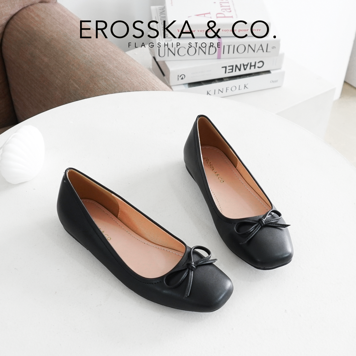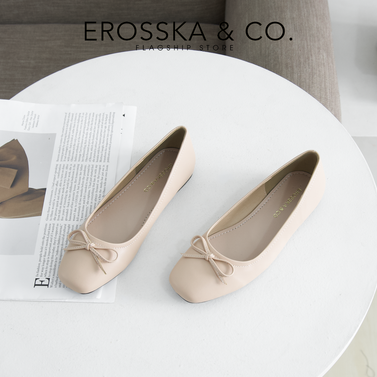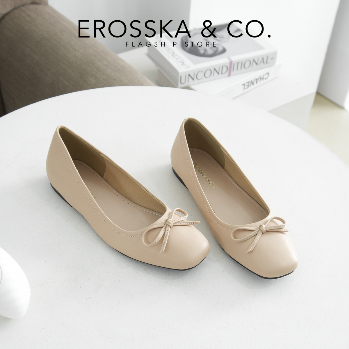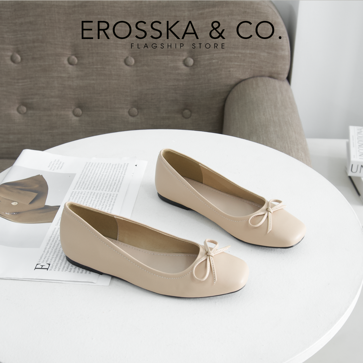 Tên sản phẩm: Erosska - Giày búp bê nữ đế bệt mũi tròn siêu êm đính nơ xinh xắn- EF015