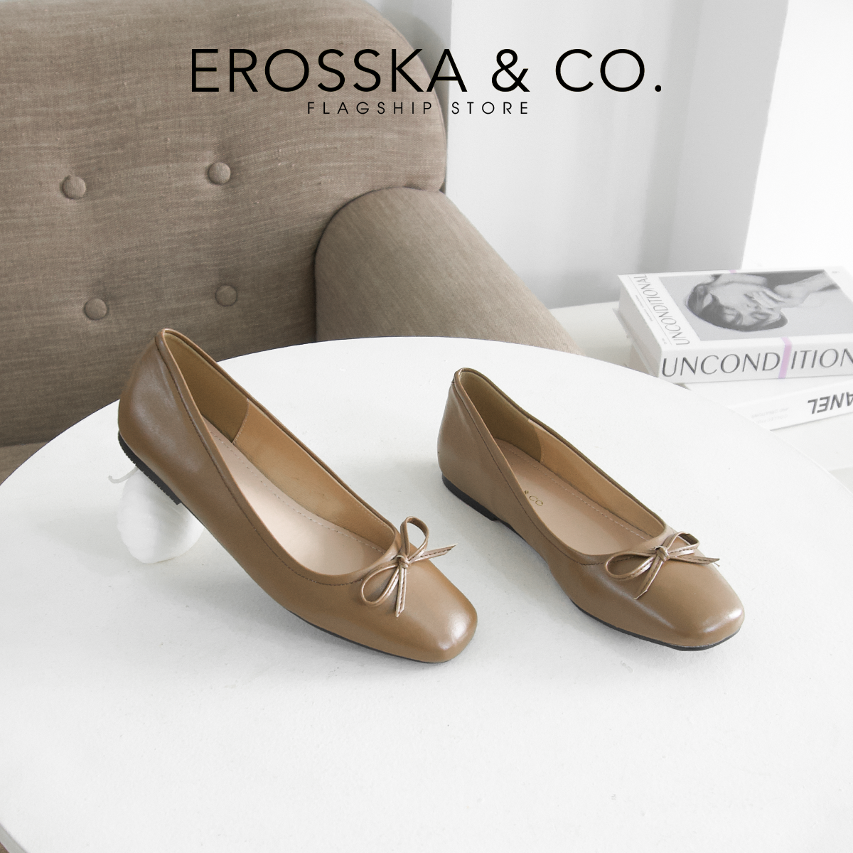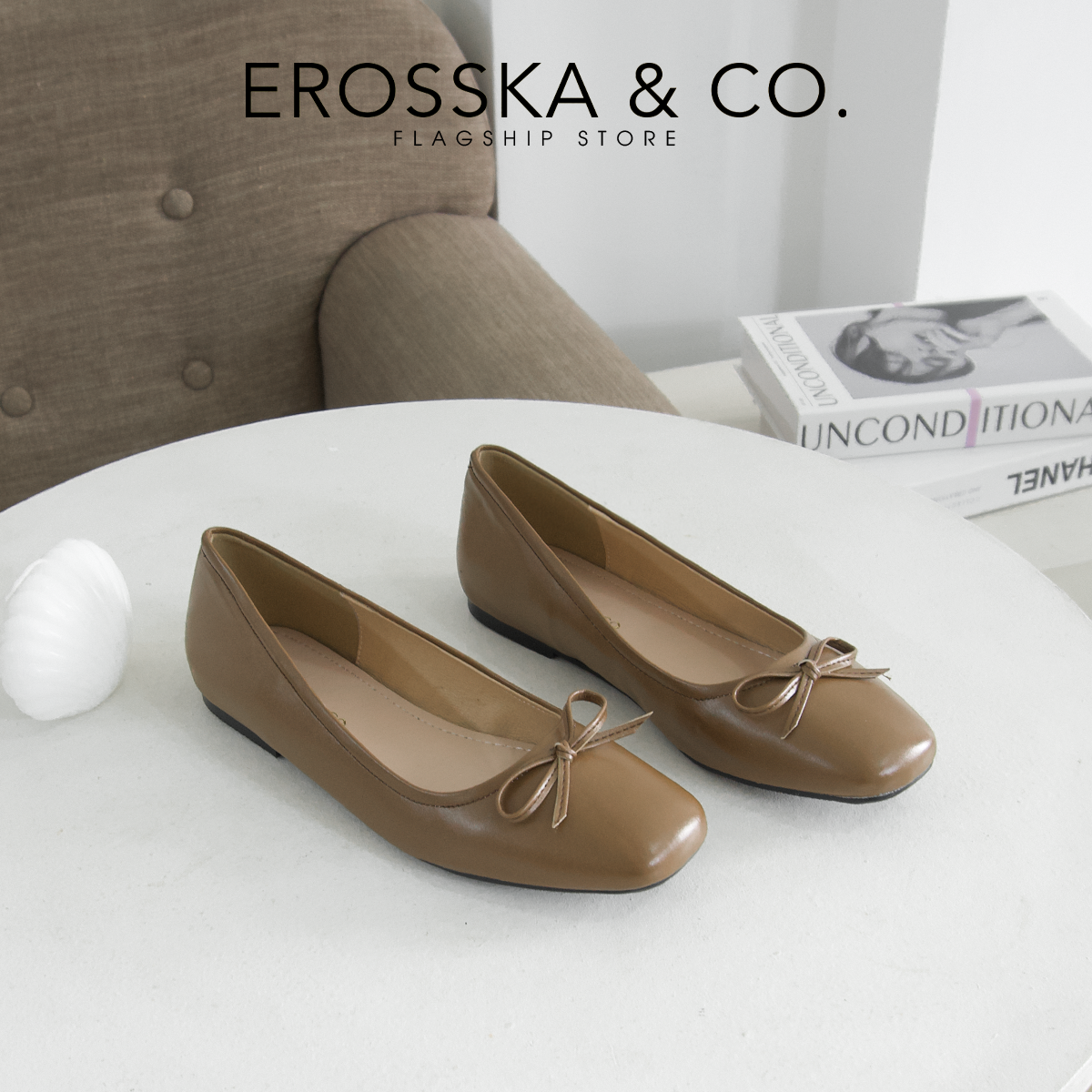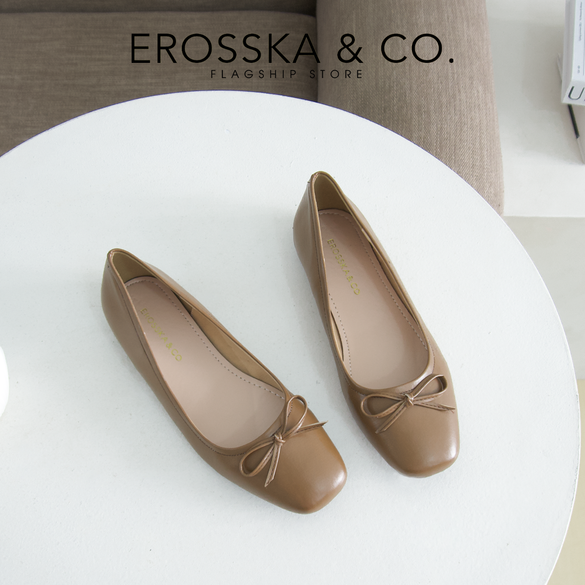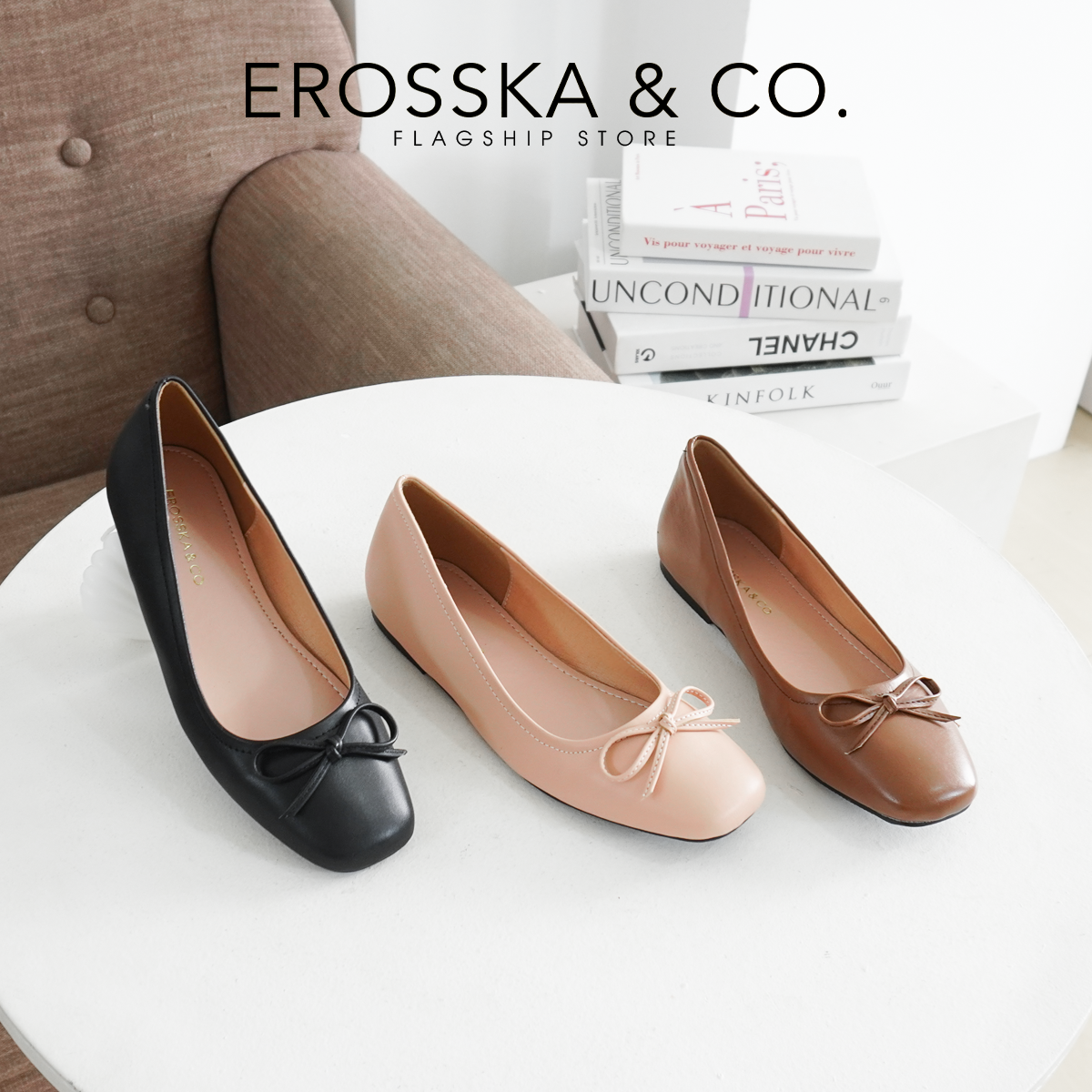 Tên sản phẩm: Erosska - Giày búp bê nữ đế bệt mũi tròn siêu êm đính nơ xinh xắn- EF015