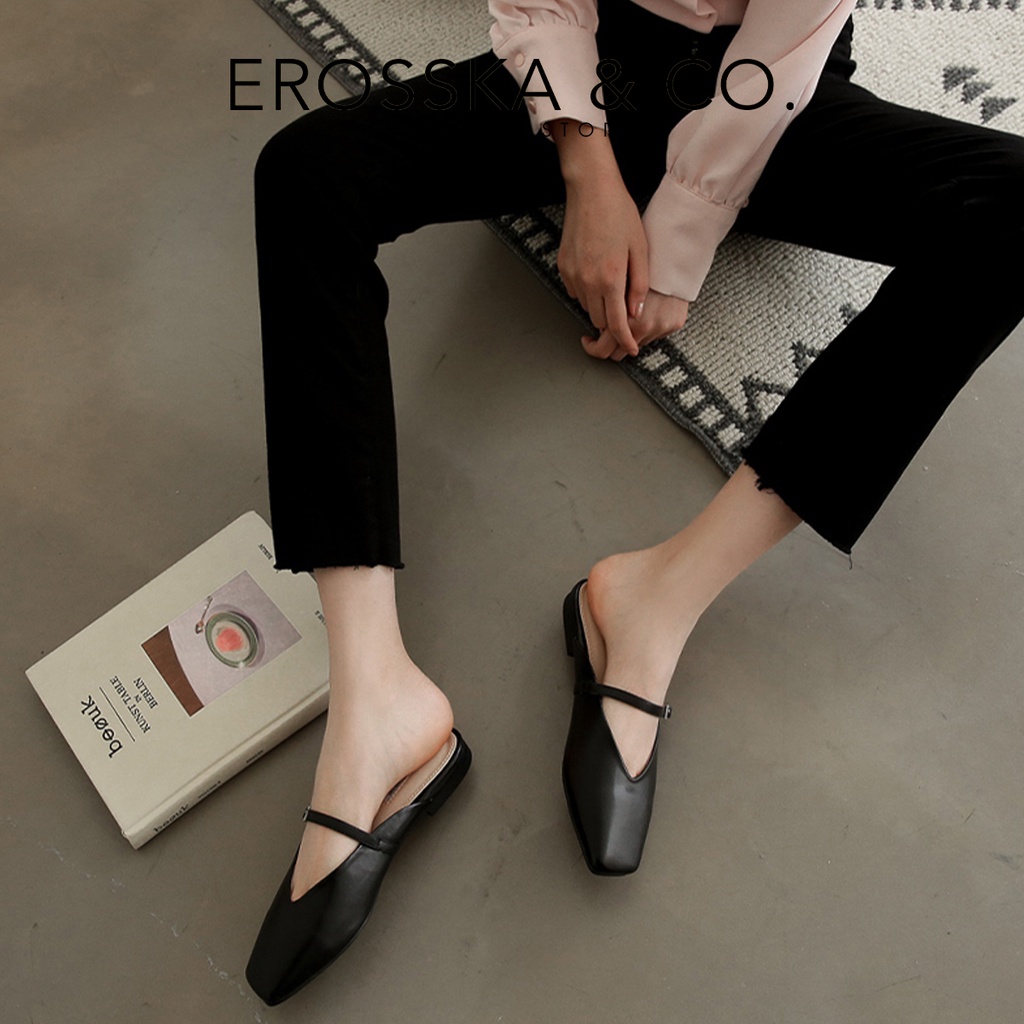 Thông tin sản phẩm: Erosska - Giày nữ đế bệt đạp ngót quai ngang phong cách thanh lịch màu kem - EL020