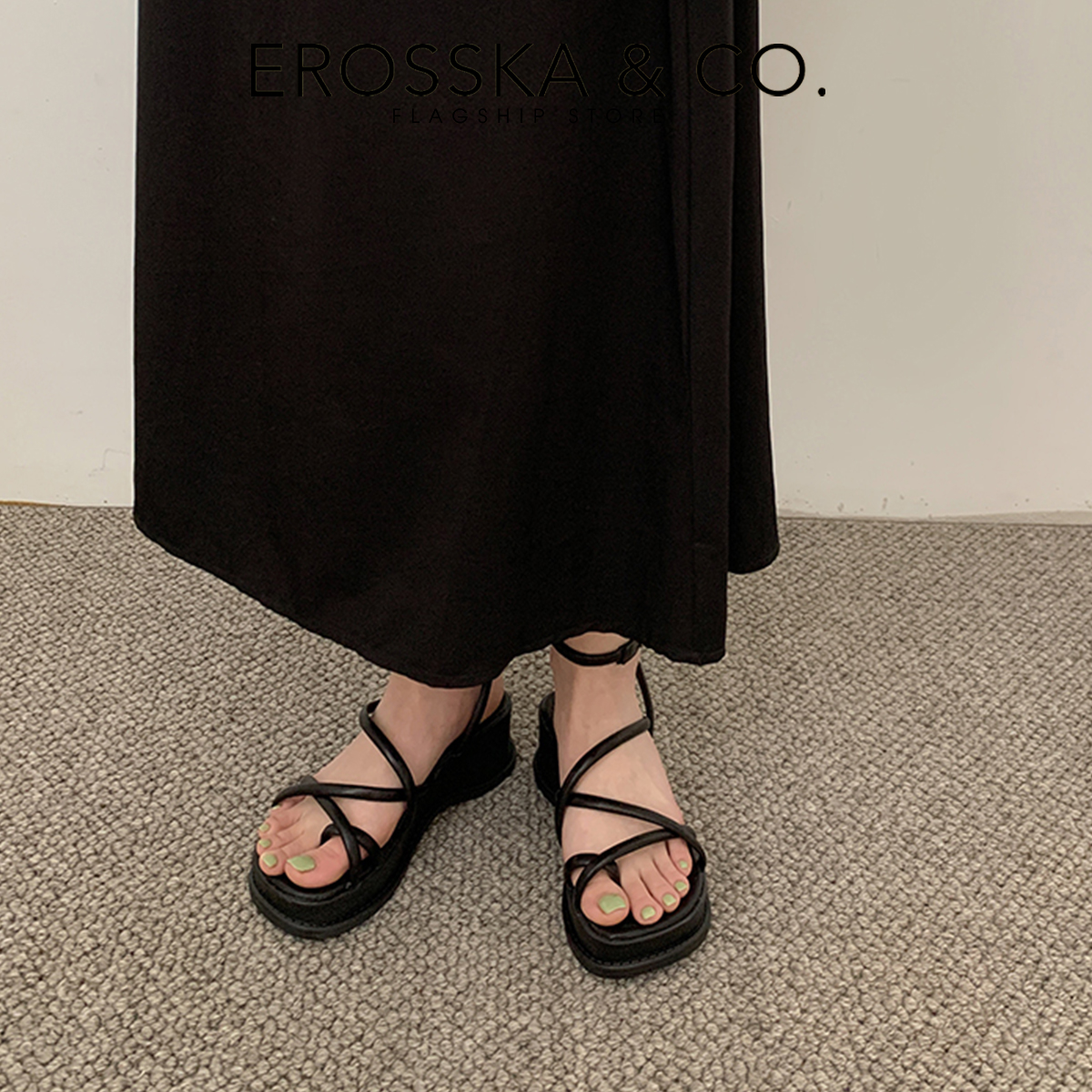 Erosska - Giày sandal nữ đế bánh mì phối dây quai mảnh màu trắng - SB001