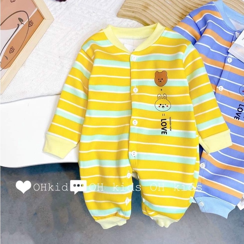 Bộ body nỉ bông kẻ ngang hoạt hình cho bé 6-12kg - A SHOP 01