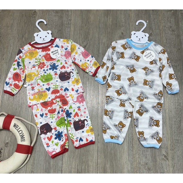 Giới thiệu Bộ quần áo dài tay giấy thái Minky mom họa tiết ngộ nghĩnh cho bé từ 0-15 tháng