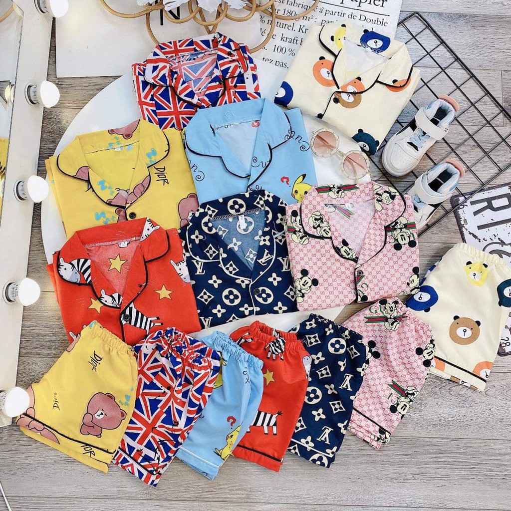 ✔️ Tên sản phẩm: Bộ Pijama cộc tay trẻ em, vải KATE THÁI XỊN KHÔNG PHA COTTON, may viền tỉ mỉ cho bé trai, bé gái