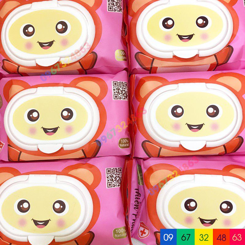 Giới thiệu (Flash Sale) Khăn ướt thiên phúc hình mặt gấu (120 tơ/ bịch) giấy lau vệ sinh ướt an toàn - Amina