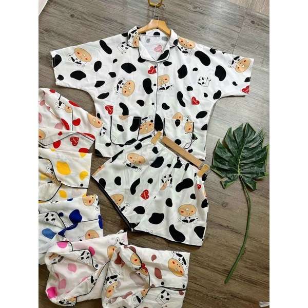Giới thiệu ❤️FREE SHIP❤️ Bộ lụa đùi cánh dơi hoạ tiết bò sữa dễ thương