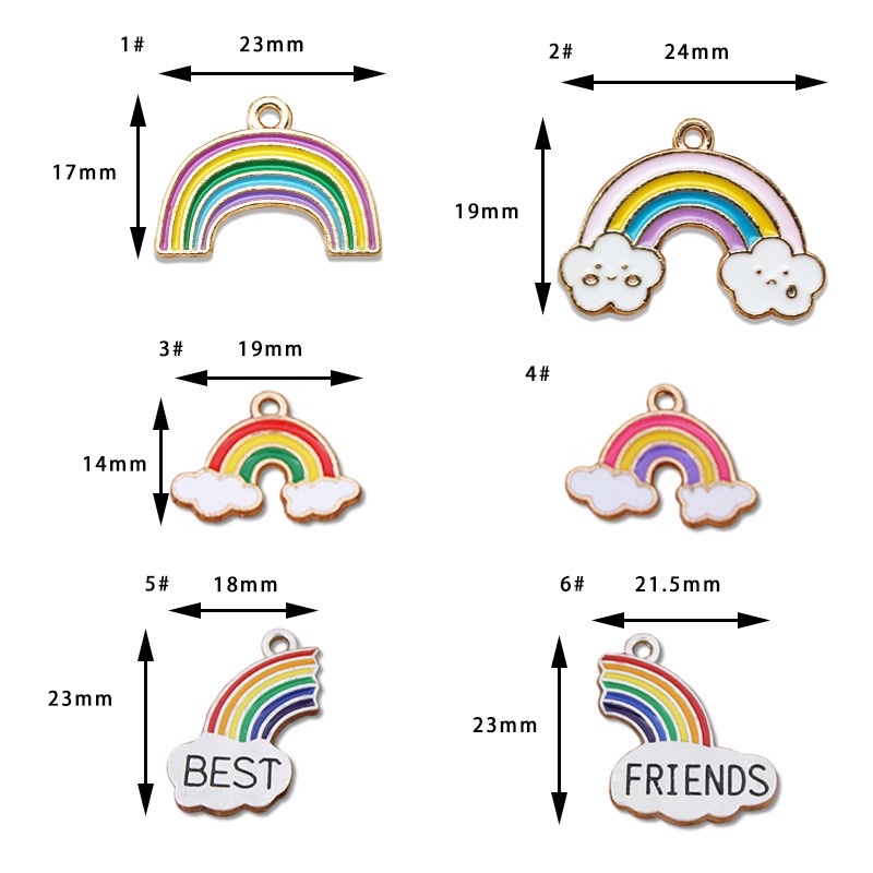 ___ THÔNG TIN SẢN PHẨM ___ + Tên sản phẩm: Charm cầu vồng + Màu sắc: Nhiều màu + Chất liệu: Hợp kim + Kích thước: Như hình