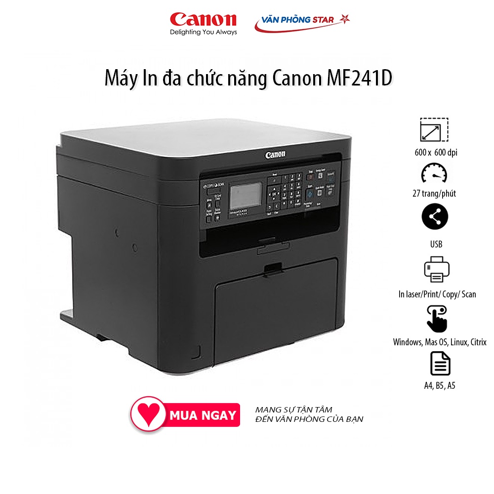Máy tính & Laptop > Máy In & Máy Scan > Máy In, Máy Scan & Máy Photo || [Free ship] Máy In đa chức năng Canon MF241D copy, scan màu, in laser đảo mặt. Tốc độ 27 trang/phút, 1200 x 1200