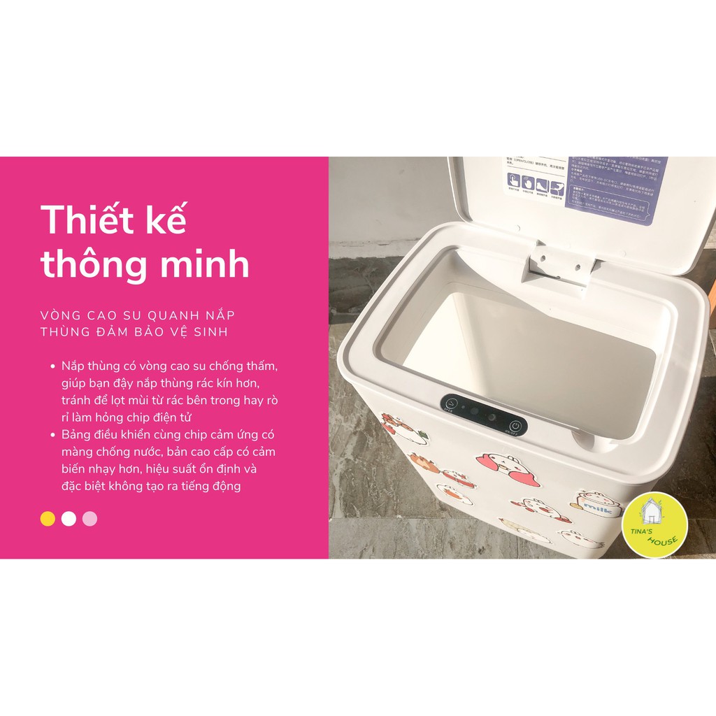 Giới thiệu ✅Free Ship ✅ Thùng Rác Thông Minh Cảm Ứng Tự Động Sạc Pin ➕ sticker cute