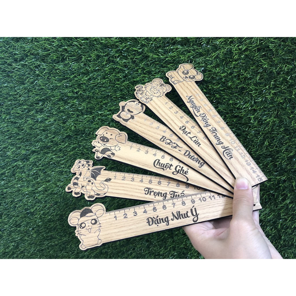 Chiếc thước kẻ là đồ dùng học tập, là người bạn thân thiết không thể thiếu của mỗi bạn học sinh mỗi khi đến trường. Nắm bắt được nhu cầu của các bạn học sinh, công ty Quà Tặng Nắng Chiều đã cho ra mắt khách hàng mẫu sản phẩm mới: Thước Gỗ Khắc Tên Và Con Vật, Họa Tiết Theo Yêu Cầu - Chất liệu: Gỗ - Màu sắc: Màu gỗ tươi sáng - Hình dạng: Hình chữ nhật, chiều dài thước 18 cm, thang đo 15cm, chiều rộng 3cm, bề dày 0.3cm - Đặc điểm nổi bật: Thước được chia cm đều đặn bởi các vạch thẳng, giúp các em học sinh kẻ bài thẳng, đẹp. - Thước có 2 mặt: Mặt trước của thước có các vạch cách nhau 1cm, có thể khắc tên và con vật tự chọn lên đó. Mặt sau không khắc gì XƯỞNG NẮNG CHIỀU CAM KẾT: - Sửa đổi thiết kế miễn phí theo ý khách hàng. - Có thiết kế mẫu trong vòng 12h, có sản phẩm trong vòng 48h - 1 đổi 1 nếu làm không đúng yêu cầu, hình ảnh chốt thiết kế của khách