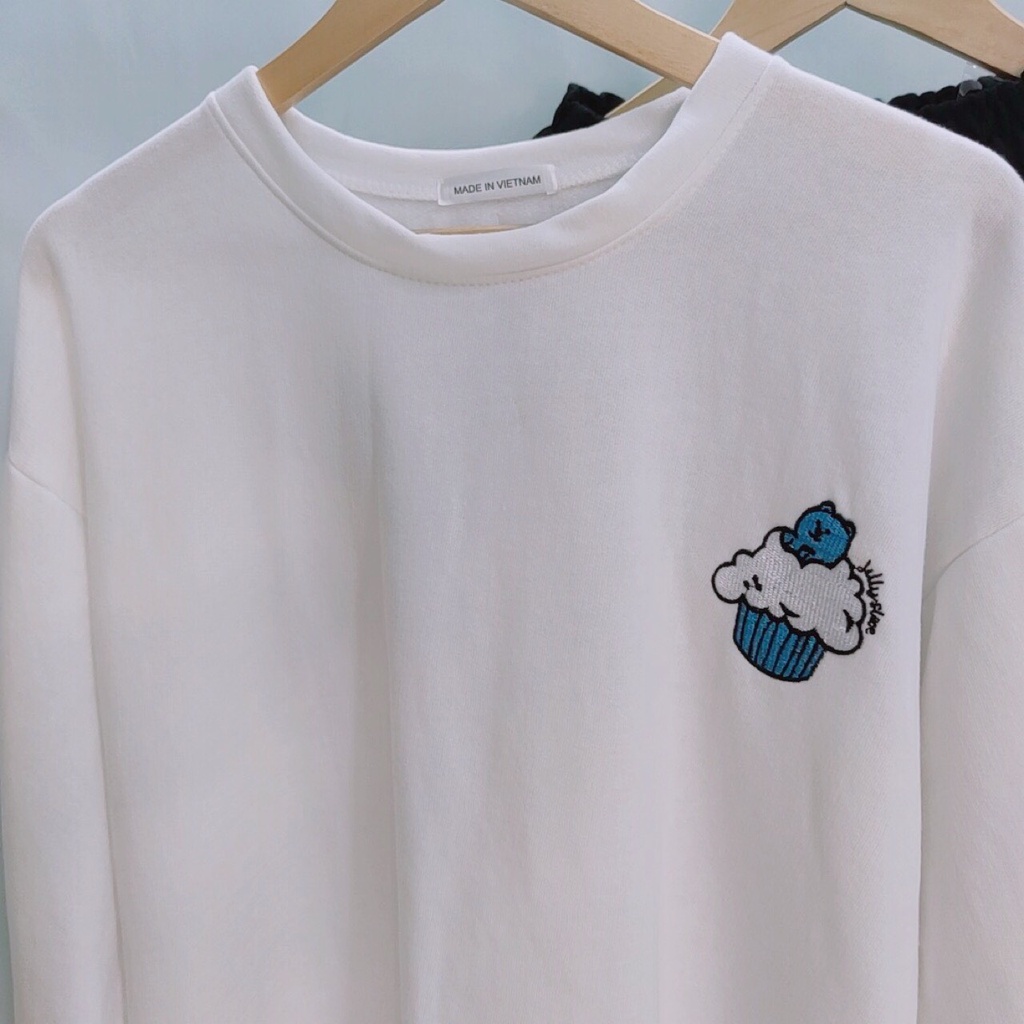 [HÀNG SẴN] Áo Sweater Chất Nỉ Cotton Thêu Kem Gấu Form Thụng siu xinh