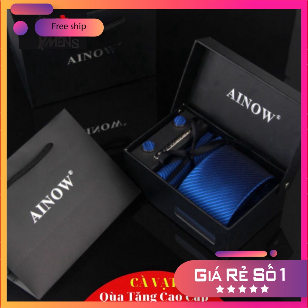 Giới thiệu ⚜️FREESHIP⚜️ cà vạt nam hộp quà tặng cao cấp + kẹp cavat + khuy măng cài áo + khăn tay LỊCH SỰ VÀ SANG TRỌNG