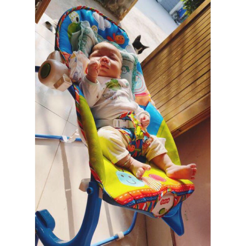 🌸 Đặc điểm nổi bật của sản phẩm: 👉 Ghế rung có khoang ghế nằm rộng rãi cho bé tự do vận động một cách thoải mái nhất. 👉 Đệm nằm êm ái với chất vải mềm mại, thông thoáng nhẹ nhàng ôm lấy bé mang đến cảm giác dễ chịu trong từng vận động. 👉 Thiết kế lòng ghế trũng hỗ trợ tư thế nằm - ngồi thoải mái nhất cho bé, bảo vệ cột sống bé tốt hơn. 👉 Đai an toàn 3 điểm chắc chắn, có bọc vải êm ái, thay đổi được kích thước để vừa với cỡ người của từng bé, đảm bảo an toàn tuyệt đối cho bé khi vui đùa trên ghế hay khi nằm ngủ. 👉 Chuyển động rung nhẹ nhàng phù hợp với các bé sơ sinh, tạo cảm giác thích thú giúp bé chìm vào giấc ngủ dễ dàng và nhanh chóng. 👉 Nhờ chiếc khung chân gập chắc chắn,ghế mang đến hai chế độ khác nhau cho bé là rung và đứng yên. Chỉ với một thao tác đơn giản là dựng chiếc khung chân đế lên, từ chế độ rung, ghế sẽ chuyển thành chế độ đứng yên. Chế độ đứng yên được sử dụng khi bé ngồi chơi hoặc khi mẹ cho bé ăn, trong khi đó chế độ rung sẽ giúp bé nhanh chóng ngủ ngoan và dần dần thích nghi với việc ngủ độc lập một mình. 👉 Khung đồ chơi dạng vòng độc đáo. 👉 Thiết kế khung treo đồ chơi dạng vòm cong khép kín, tăng cường đảm bảo an toàn cho bé, tránh trường hợp bị ngã khi bé nhoài hay với người. Khung treo có thể tháo rời, phù hợp khi bé đã lớn hơn. 👉 3 dây đồ chơi đáng yêu gắn trên đó với màu sắc tươi sáng và hình thù ngộ nghĩnh sẽ kích thích trí tò mò và rèn luyện khả năng cầm nắm, tập với cho bé. Đặc biệt món đồ chơi ở giữa sẽ phát ra tiếng nhạc vui nhộn mỗi khi bé kéo, điều này chắc chắn sẽ làm bé thích thú.....