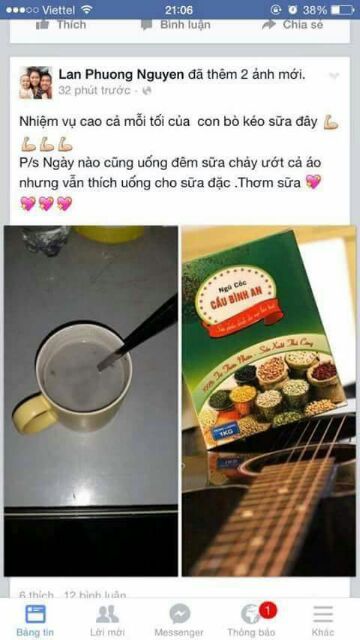 Ngũ cốc lợi Sữa Cầu Bình An 🎉🎉Thành phần: đậu nành, đậu xanh, đậu đen, đậu đỏ, mè đen, hạt sen, gạo lứt tám, hạt kê 🎉🎉🎉Công dụng:Bổ sung chất xơ, vitamin nhóm B, E, protein, isoflavone... làm đẹp da, mát người, thải độc cơ thể, nhuận tràng. Cung cấp cho sữa mẹ nguồn vitamin, sắt và khoáng chất dồi dào, làm sữa mẹ đặc và béo cho bé nhanh lớn. Ngũ cốc tăng cường gấp đôi lượng mè đen và hạt sen, giúp sữa mẹ mát hơn. Cho mẹ mịn da, trơn tóc, sữa bé thơm mùi mè đen đặc trưng. 🎉🎉Cách sử dụng: Pha 3 thìa ngũ cốc với 250ml nước ấm nóng, thêm sữa đặc hoặc đường uống lúc còn ấm- nóng ngày 2-3 cốc. Ngoài ra mẹ nên chú ý ăn ngủ điều độ, uống nhiều nước, tránh stress. HSD: 10 tháng kể từ ngày sản xuất. Ngũ cốc làm thủ công không có chất bảo quản nên cần cất giữ nơi khô thoáng, tránh ẩm mốc. ☎0989699199 Facebook: Nguyễn Thu Dung Ib/call/zalo cho shop nếu bạn cần tư vấn thêm